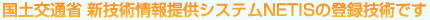 国土交通省 新技術情報提供システム NETISの登録技術です